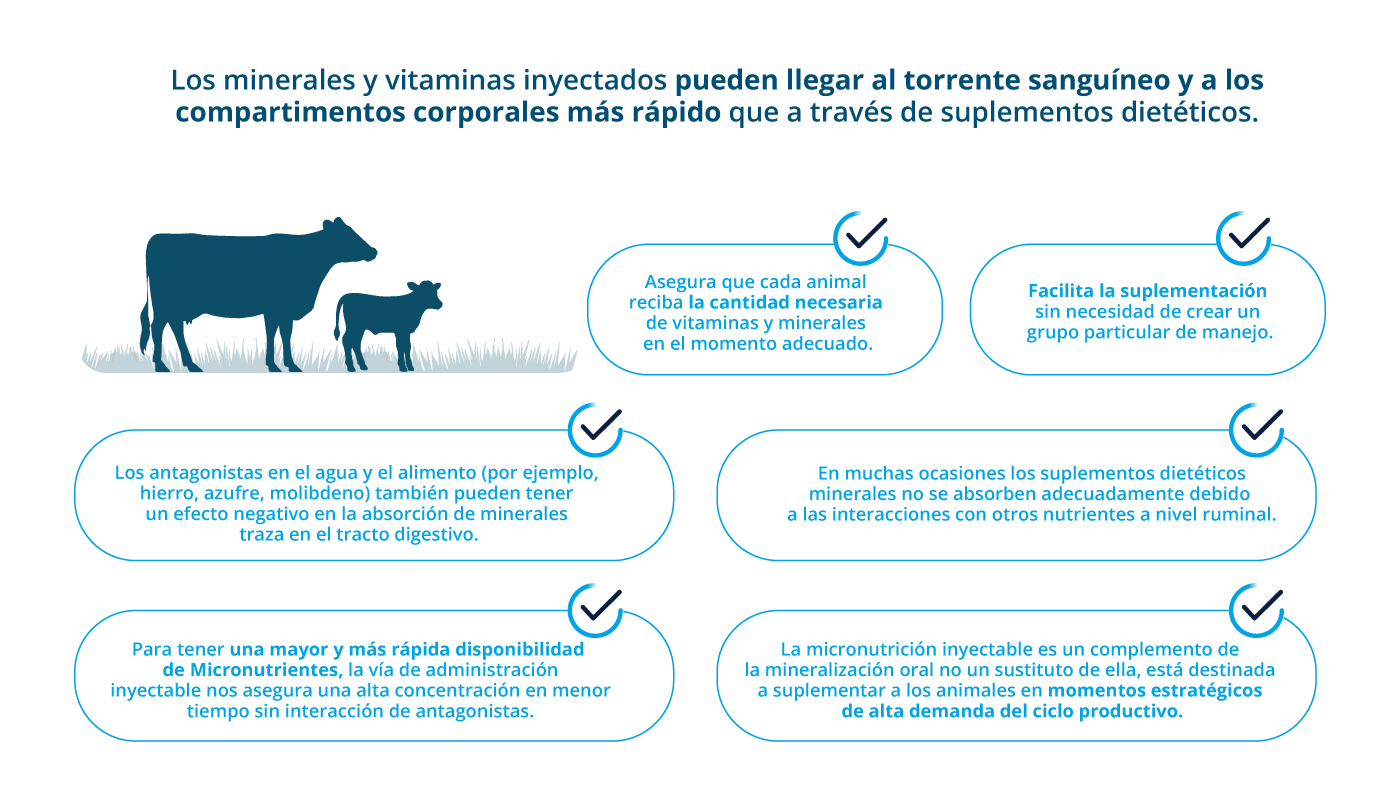 Su reconocida línea de micronutrición inyectable destinada a la suplementación estratégica de bovinos de carne y de leche en fases críticas del ciclo productivo es un complemento estratégico para los productores a nivel mundial.