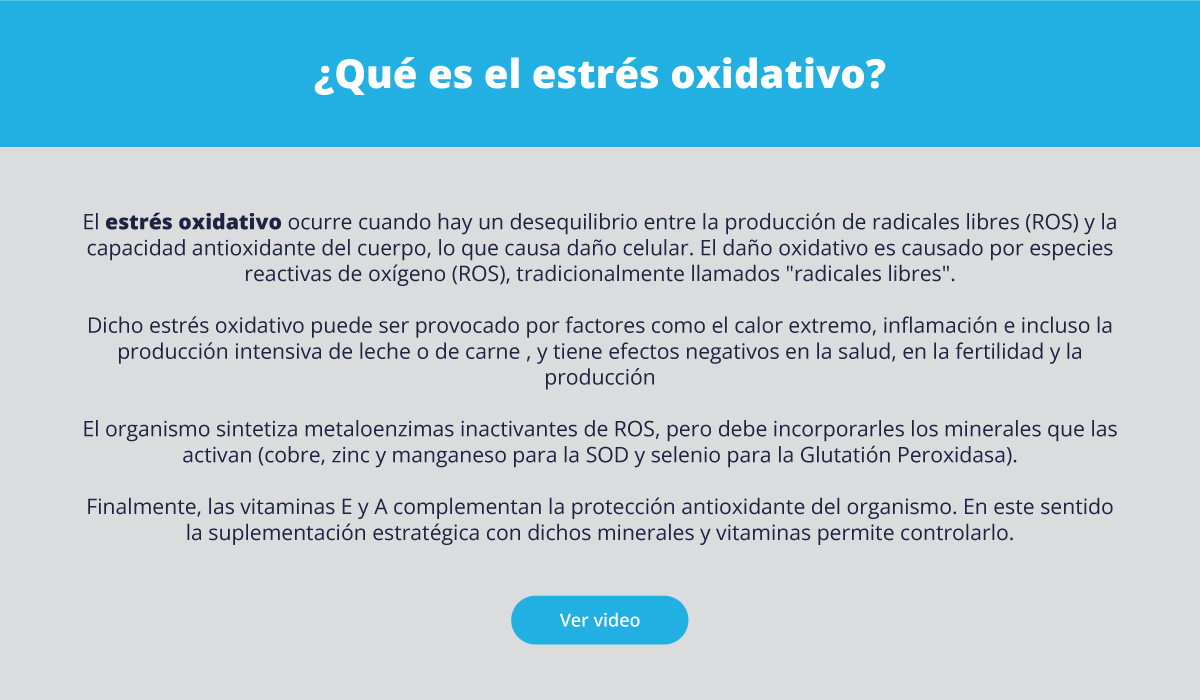 Dicho estrés oxidativo puede ser provocado por factores como el calor extremo, inflamación e incluso la producción intensiva de leche o de carne , y tiene efectos negativos en la salud, en la fertilidad y la producción.